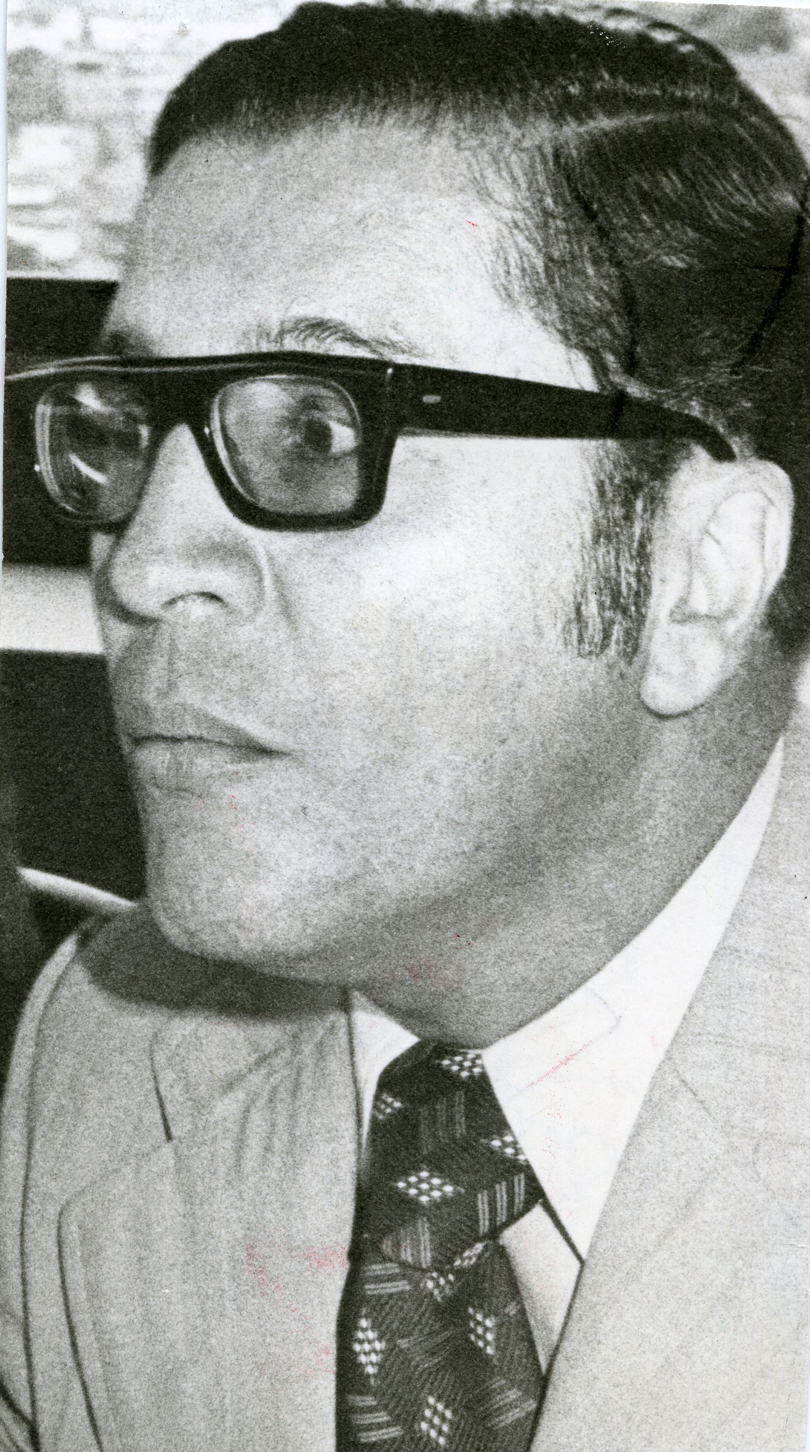Humberto Molano Molina. Se aprecia vestido de saco, camisa corbata y usa gafas