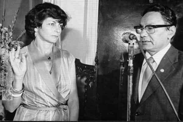 Doris Eder de Zambrano y Luis Ignacio Andrade Espinosa. Posesión de la primera y única mujer Gobernadora del Valle.