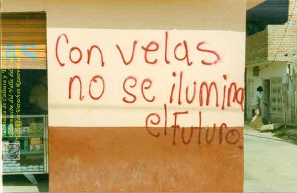 Graffiti. Leyenda: "Con velas no se ilumnia el futuro". 92