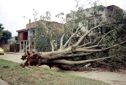 dc.description | Árbol caído en una calle de barrio. Al fondo residencias. Plano medio. Toma diagonal. Día nublado. | spa |