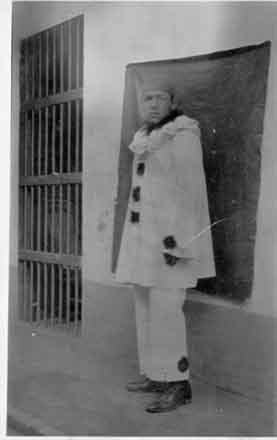 Jorge Guerrero en otro de sus trajes de payaso durante los carnavales de Santiago de Cali, C. 1940.
