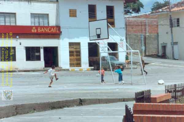 Niños jugando en la esquina del parque principal. Ulloa. 1998.