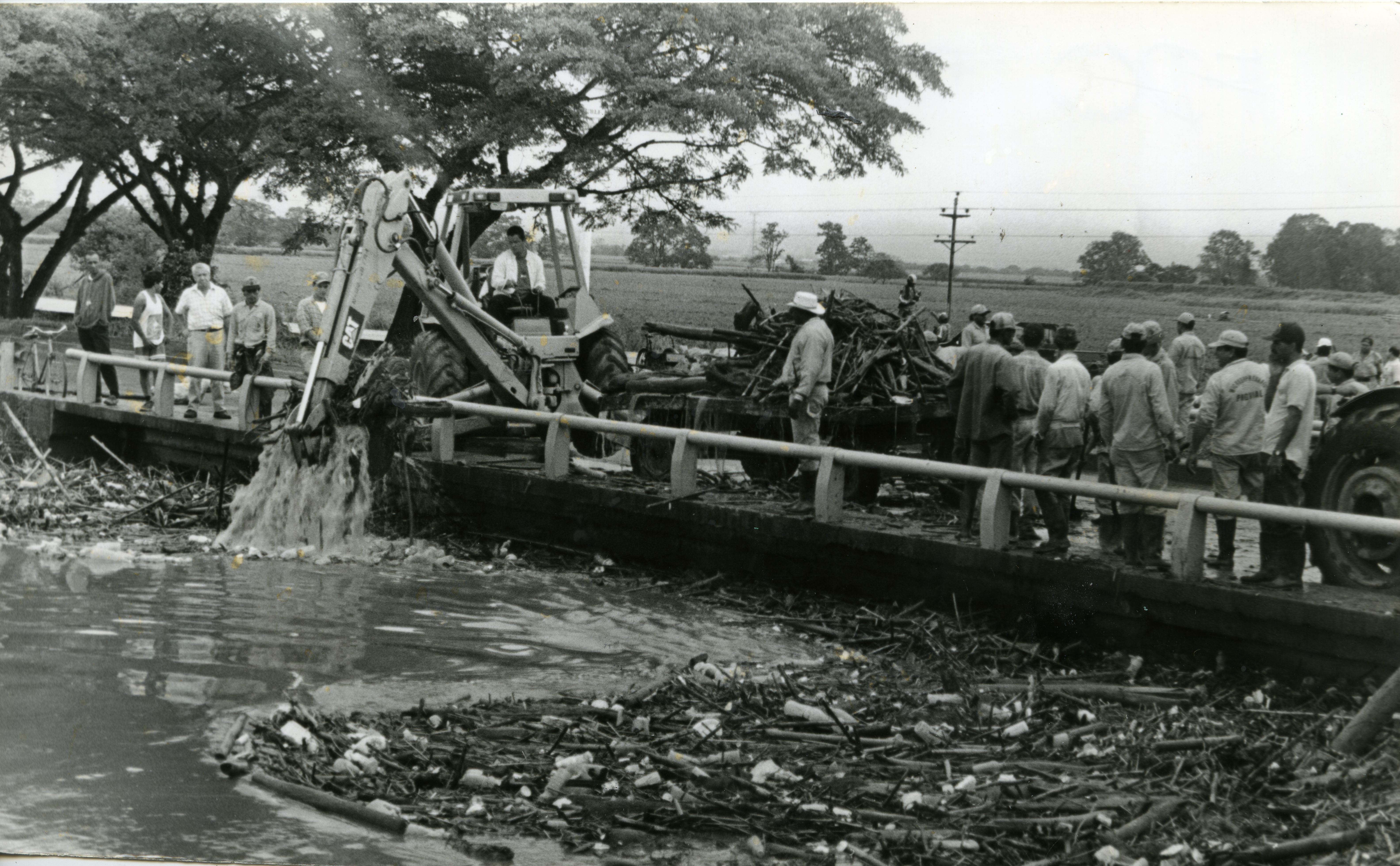 Reverso: Al culminar el día, microempresarios de mantenimiento vial, adscritos al Instituto Nacional de vías, Regional Valle, en coordinación con operarios y maquinaria de la secretaria de Obras Públicas Regional, continuaban con la remoción de los restos dejados por la paliza que taponó los puentes el Río Frayle y el Río Bolo, en inmediaciones de la recta Cali - Palmira. El paso por el sector es restringido