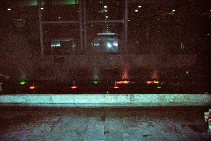 | dc.description | Imagen tomada en exterior, de noche, donde se puede apreciar una fuente con algunos reflectores de colores. Al fondo un ventanal. Plano medio. | spa |