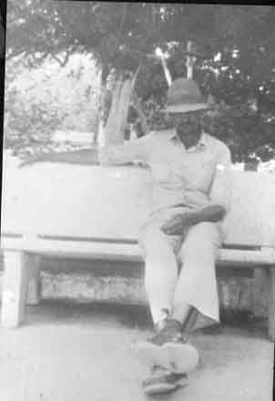 Jaime Reina descansando en una de las bancas del parque del municipio de Vijes Personaje típico .C.1960.