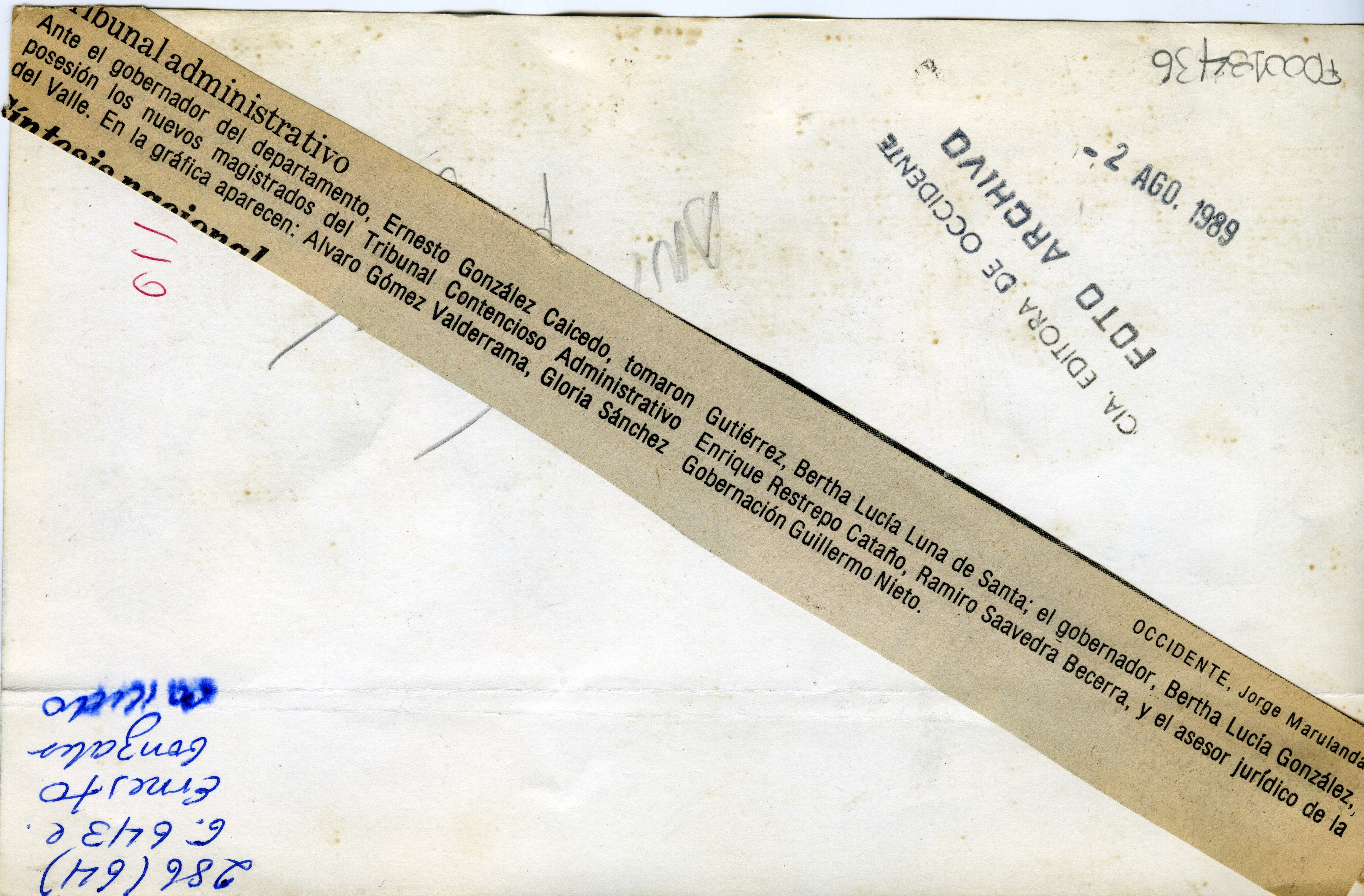Fotografia de plano medio largo del Gobernador del Valle Ernesto Gonzalez Caicedo en la posesión de los nuevos Magistrados contencioso Administrativo del Valle del Cauca