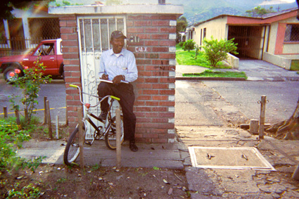 | dc.description | Plano Medio. En la imagen se observa un hombre de raza negra parado con una bicicleta frente a una caseta de vigilancia elaborada en ladrillo. Al fondo separados por una vía algunas viviendas y un vehiculo. | spa |