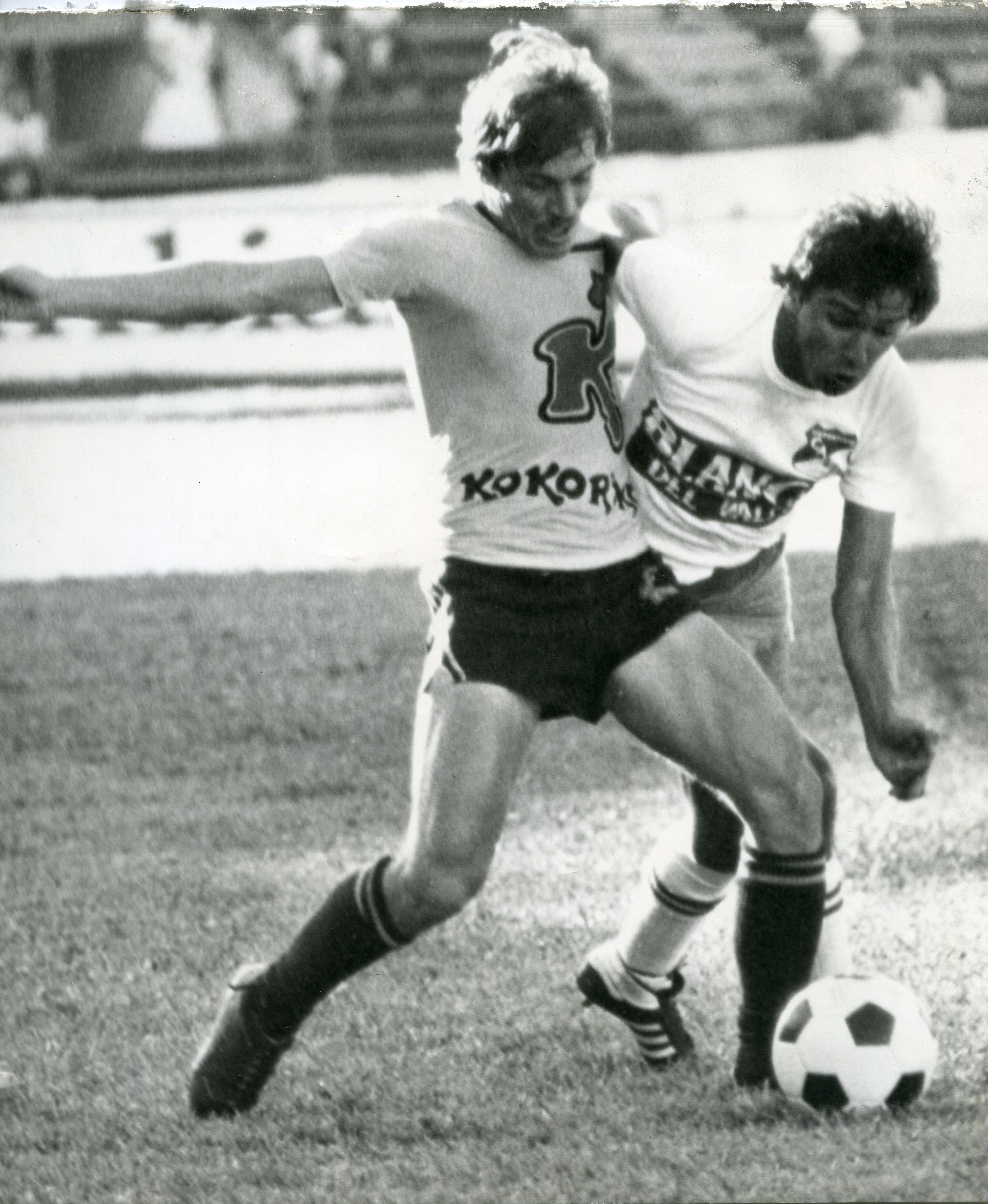 Partido del Deportivo Cali y Tolima, realizado en el Estadio Olímpico Pascual Guerrero. Se aprecia jugadores se disputan el balón
