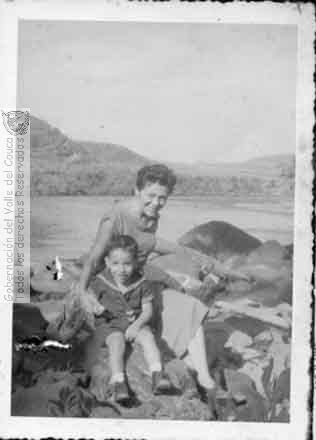 s. n., s. n. & s. n. (1955). Inés Cabrera y su hijo Álvaro Cabrera, de paseo al río Calima, antes de que lo canalizaran para convertirlo en represa & 601971. DARIEN: Biblioteca Departamental Jorge Garces Borrero.