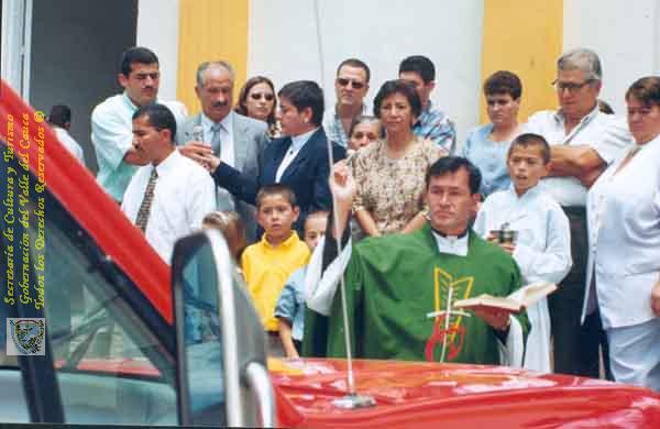 Diego Julian Giraldo (1999). Ceremonia de bendición del carro de Bomberos en la Plaza principal del municipio, en presencia de las autoridades y de los habitantes & 400395. ARGELIA: Biblioteca Departamental Jorge Garces Borrero.