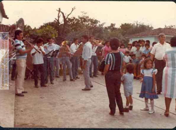 Presentación de la Banda de Músicos de Bugalagrande en el corregimiento del Mestizal. 1985
