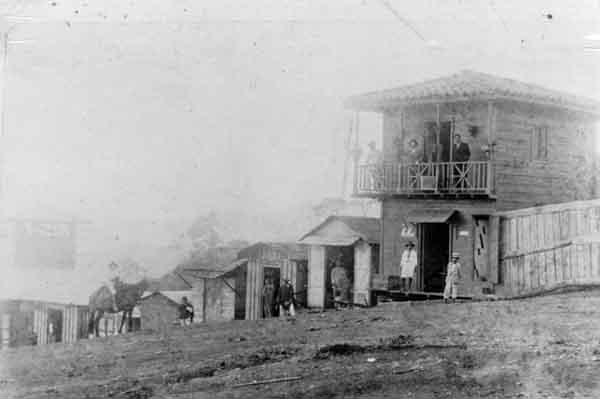 Casa construidas en madera por los primeros pobladores y trabajadores del Ferrocarril del Pacífico. La Cumbre, 1935.
