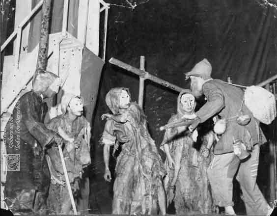 Actores del Teatro Experimental de Cali, representando la obra " A la diestra de dios padre" de Tomás Carrasquilla. Cali. 1963.