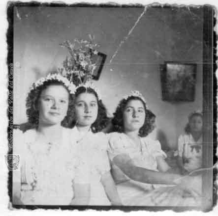 Emerlina Gómez y acompañantes por identificar. Vestidas como damas de compañía, Toro,1935.