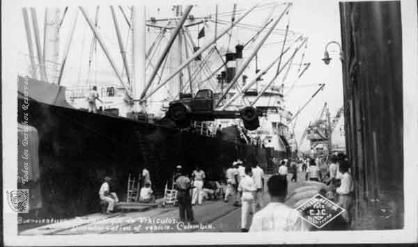Desembarco de vehículos en el muelle de Buenaventura, 1940.