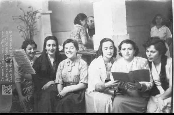 Fanny Mejía, Cecilia Mazuera, Leonor Gómez, entre otras.Reunión de amigas. Cartago, 1945.