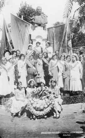 Fiestas de La Independencia. En el Parque Uribe aparecen las Reinas representantes de los departamentos que existían en ese momento. Sevilla, C. 1932.