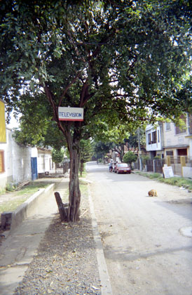 Plano de contexto. Exterior día. Toma de calle con perspectiva lineal. Arbol como punto central. Profundidad de campo con punto de fuga en costado derecho.