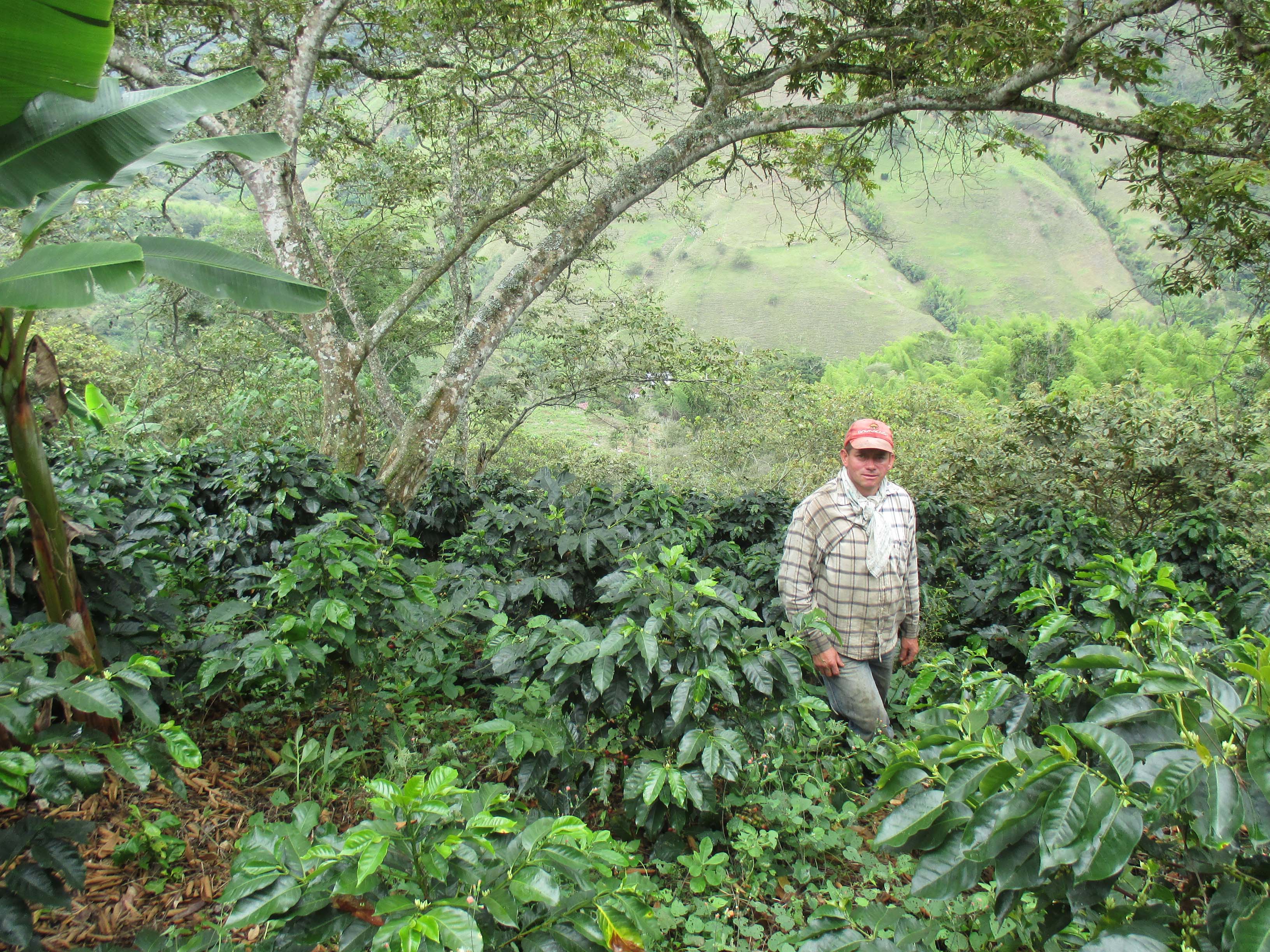 Caficultor en cultivo de café