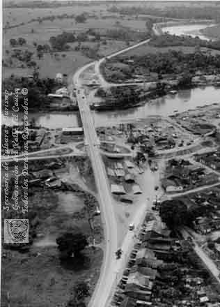 Panorámica del sector nororiental de la ciudad, también se divisa el Puente Carlos Holguín, sobre el río Cauca, Juanchito. Candelaria, 1984.