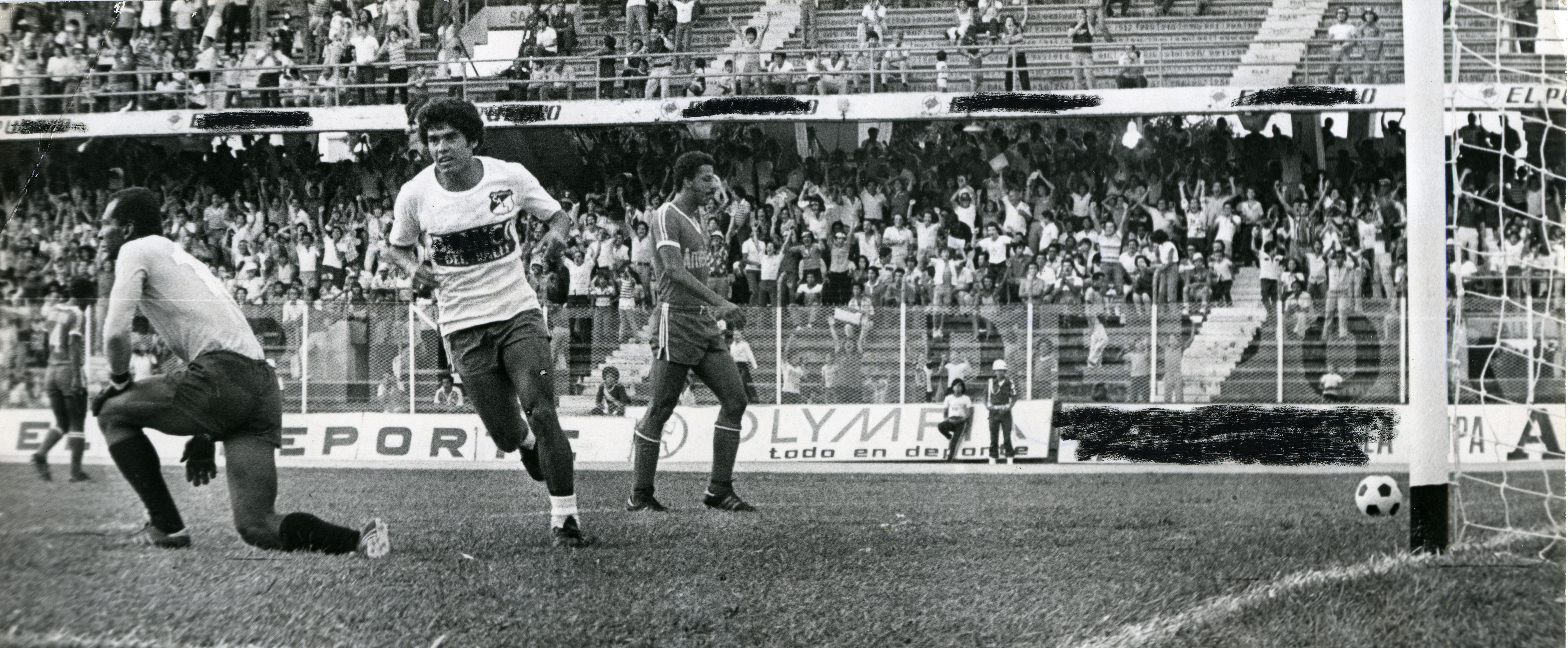 Partido Deportivo Cali vs América. Se aprecia gol de Angel María Torres. Observamos en la gráfica: Angel María Torres, Silvio Quintero, Juan Penagos, Alegría Valencia