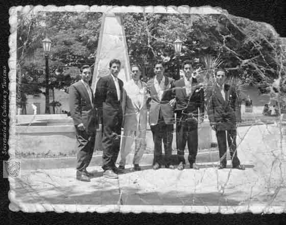 Horacio Molina, Poles, Bernardo Benítez, Ignacio Mondragón, Carlos Emiro Saavedra, Hugo Libreros y Otoniel Torres. Bolívar, Parque principal, 26-07-54.