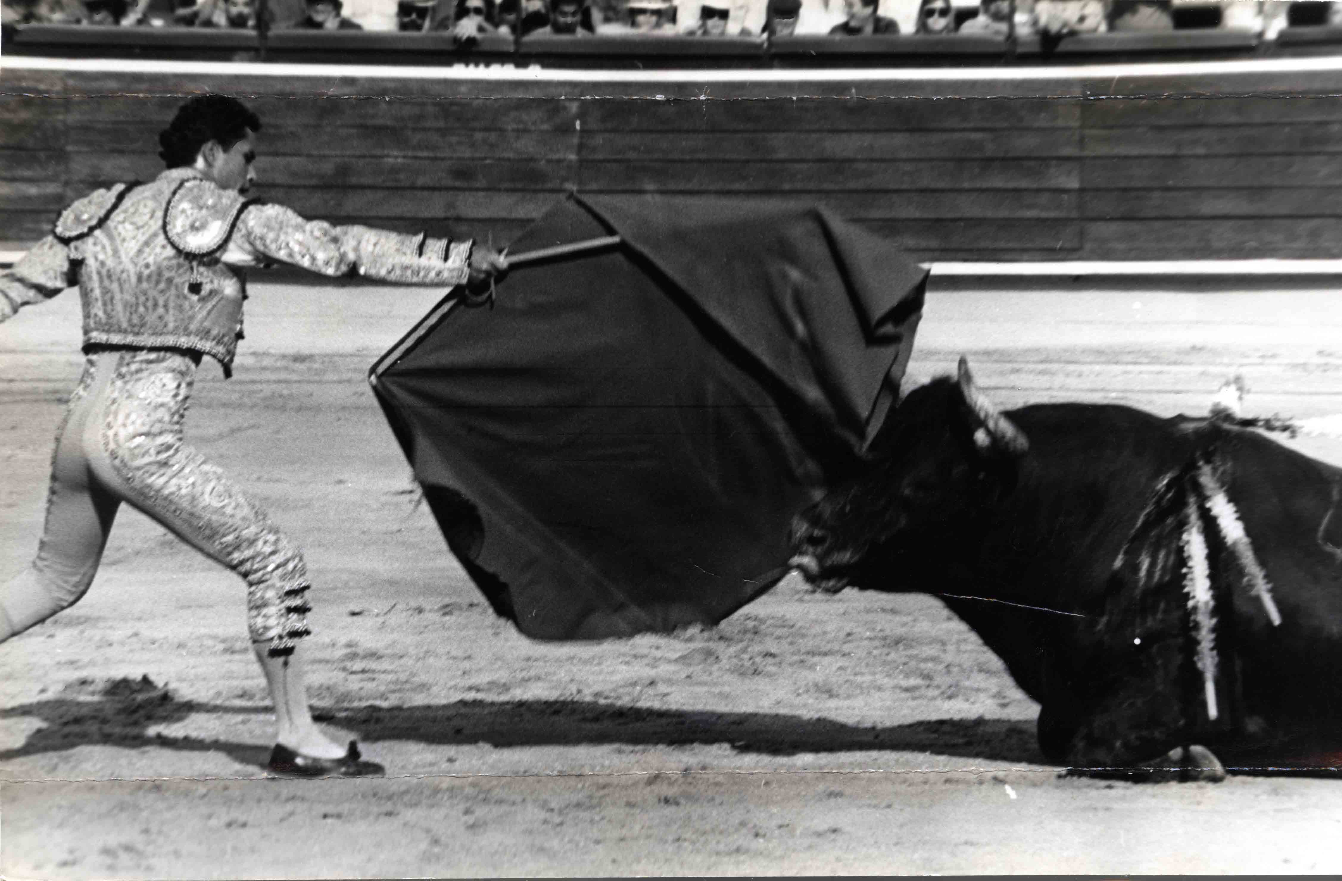 Torero Pipe Manrique en la Plaza de Toros de Cañaveralejo en Santiago de Cali >El Archivo del Patrimonio Fotográfico y Fílmico del Valle del Cauca es responsabilidad de la Biblioteca Departamental del Valle Jorge Garcés Borrero, por convenio de cooperación suscrito con la Secretaria del Cultura Departamental, con el fin de aunar esfuerzos para su conservación, preservación y divulgación del Archivo entre la comunidad Vallecaucana, especialmente entre los estudiantes e investigadores que visitan la Biblioteca, propiciando el su uso y consulta permanente. La universidad Icesi es un colaborador en el proceso de difusión, facilitando la tecnología que permite la consulta de las imágenes.