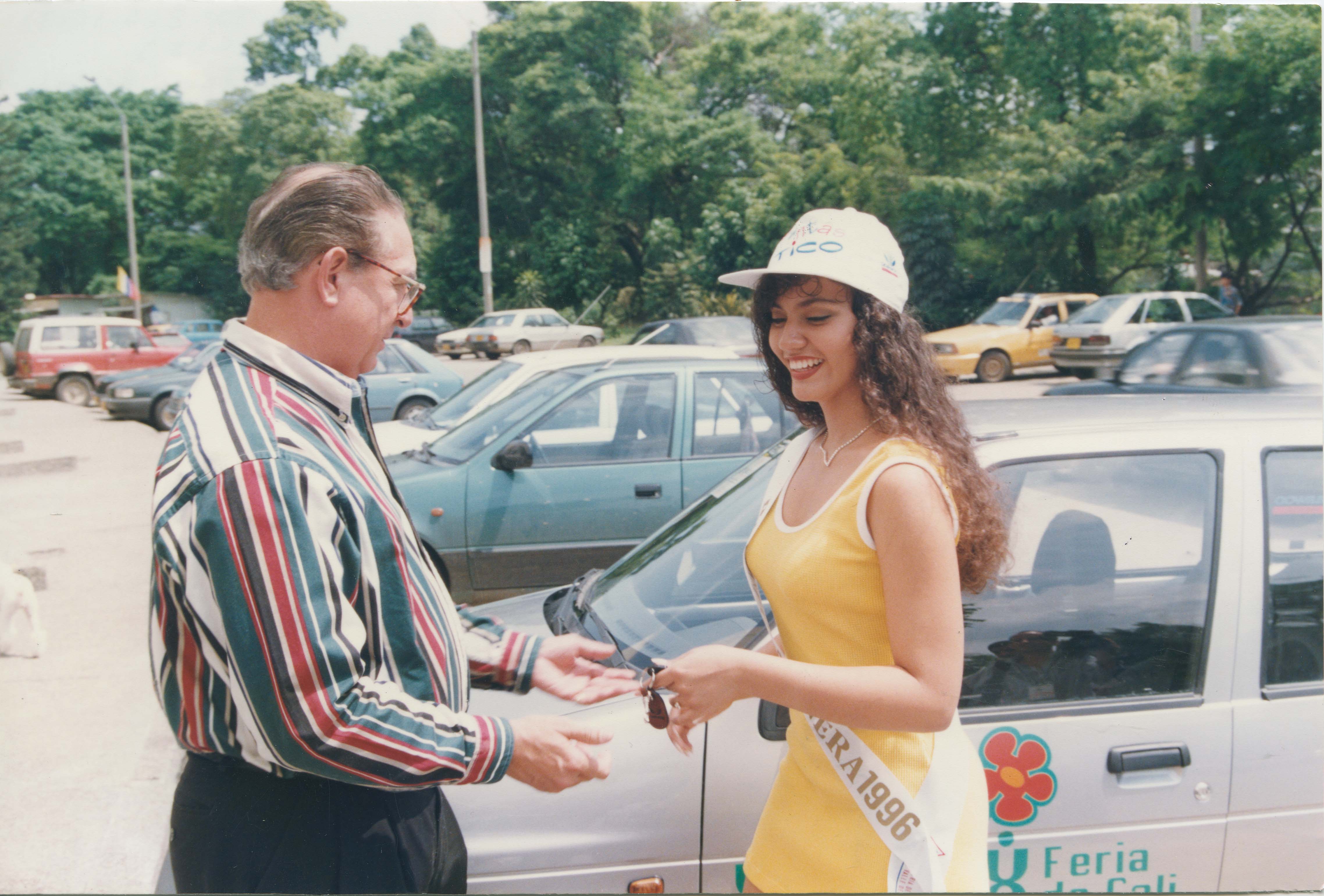 Luz Elena Erazo, nueva Reina Comunera en representación de la Comuna Tres se hizo acreedora de un automóvil Deawoo Tiko, entregado por el presidente comercial de esta firma, el señor Lázaro Montes