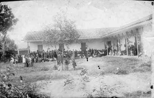 Alumnos de la Escuela Marco Fidel Suarez, en la actualidad es el Colegio Alfonso Zawadsky ubicado en el parque Boyacá.Yotoco, C.1940.