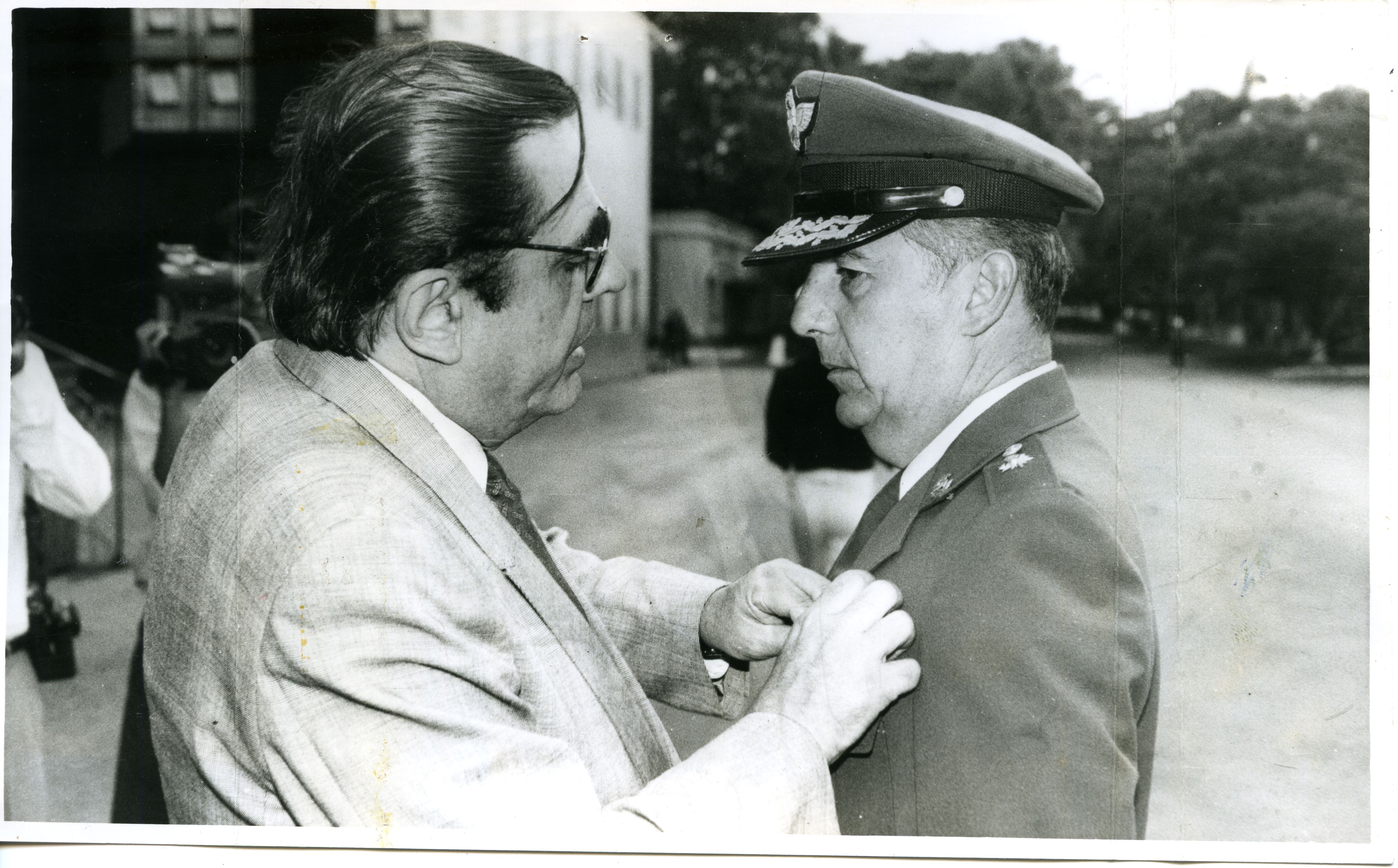 Foto de la condecoración con la medalla de "Joaquín de Cayzedo y Cuero" al general Alfonso Abondano Alzamora director de la Unidad de la Base Aérea Marco Fidel Suárez