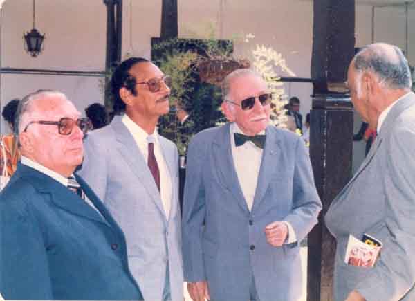 Reunión de miembros de la Junta de la Sociedad de Mejoras Públicas: Tulio Fernández en compañía de Luciano Wallis, César Calero Mercado y Ramón Hernández Rengifo. Santiago de Cali, C 1990.