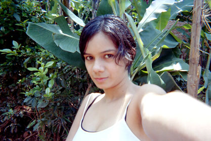 Plano medio alto. Exterior día. Autorretrato sobre fondo natural.