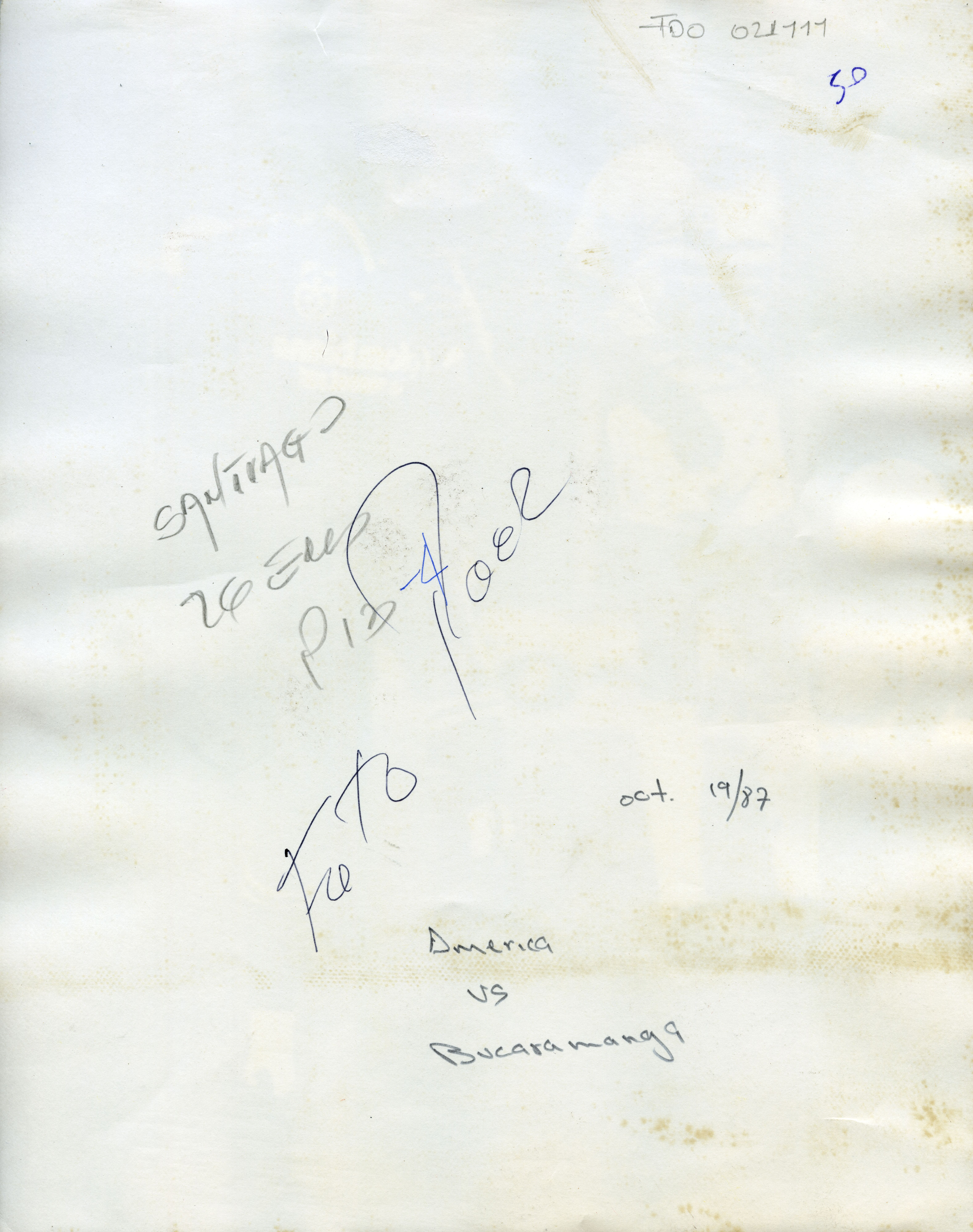 Partido entre los equipos América de Cali vs Bucaramanga, realizado en el estadio Pascual Guerrero. Se aprecia al Sachi Escobar jugador América y defensa Búcaro en disputa por el balón