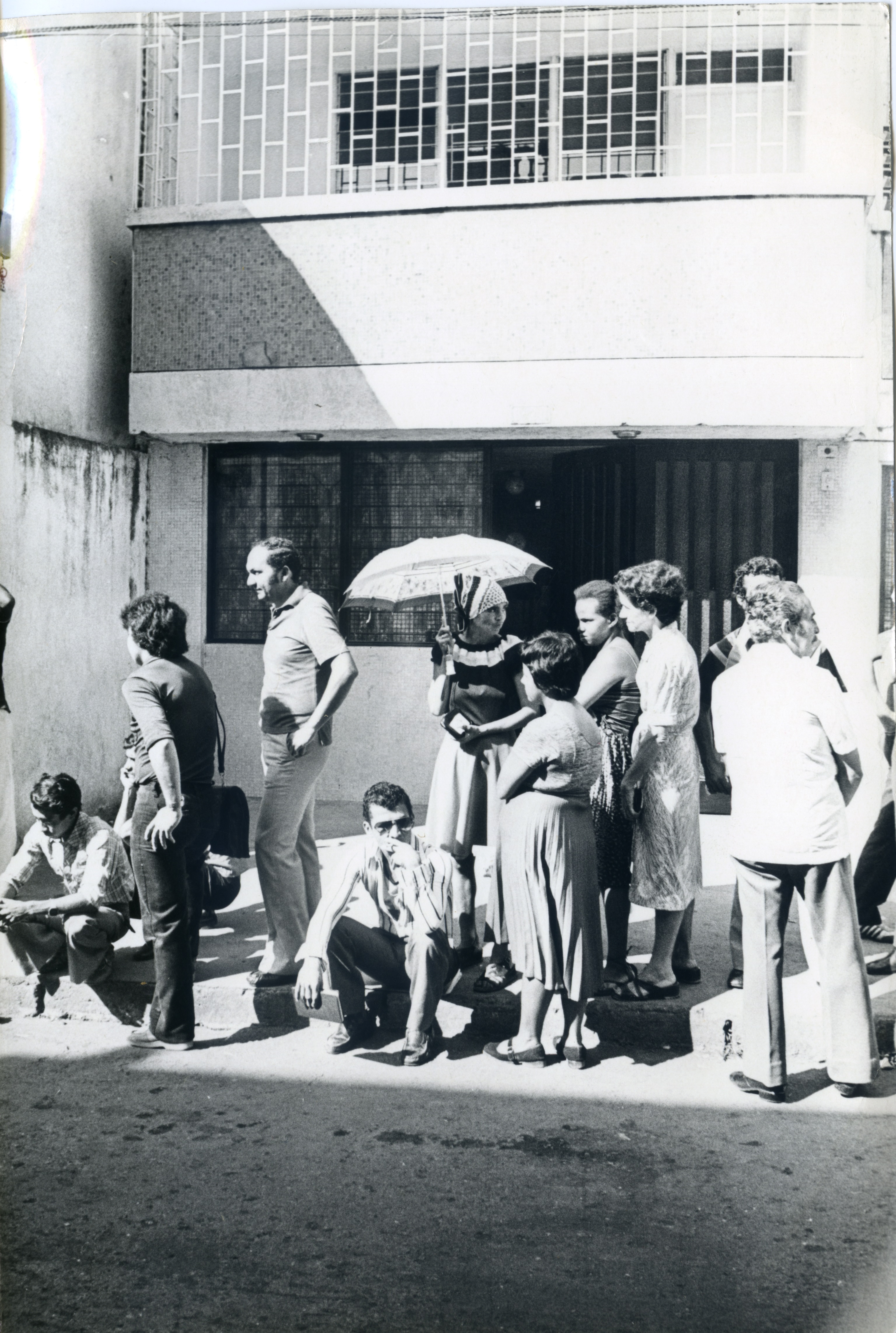 Largas filas a las afueras de la antigua sede municipal de la Registraduría Nacional del Estado Civil.