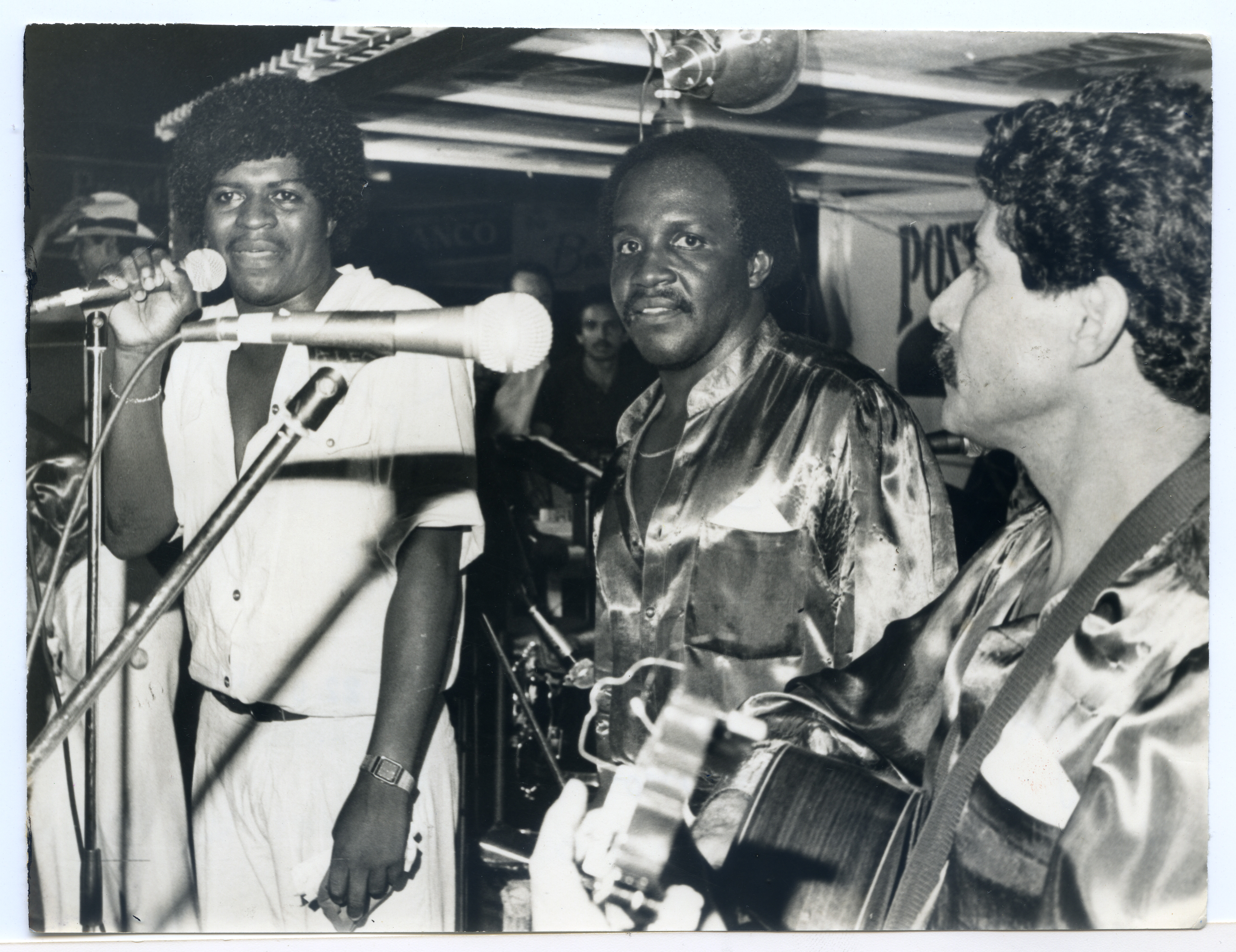 En la fotografía aparecen de izquierda a derecha: Pepe González, Hermes Manyoma y su orquesta la ley.