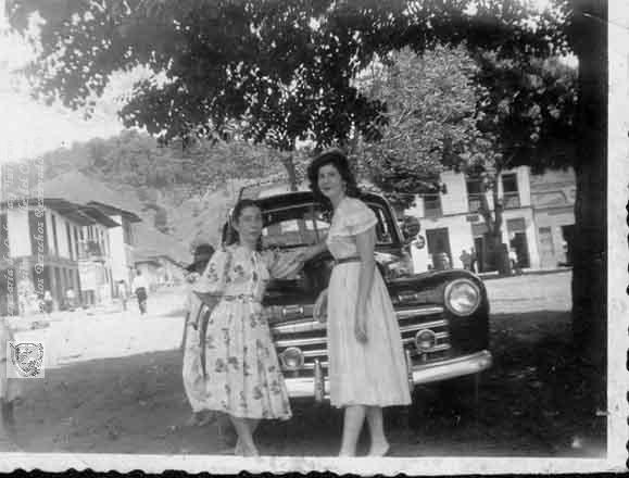 Leopoldina Valverde y su amiga, en la antigua vía al mar. Buenaventura. 1948.