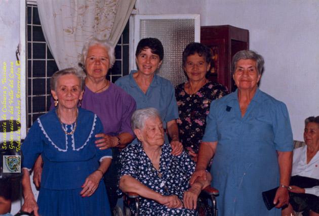 Damas de la Caridad. De pie: Lilia Marín, Carmen Rosa Marín, Anabel Gutierrez, Cecilia Aldana, Laura Dominguez. Sentada: Elvira Herrera.
