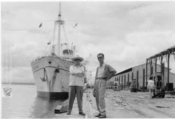 Edgar Montúfar y Alejandro Castillo, visitando el Puerto. Buenaventura, 1958.