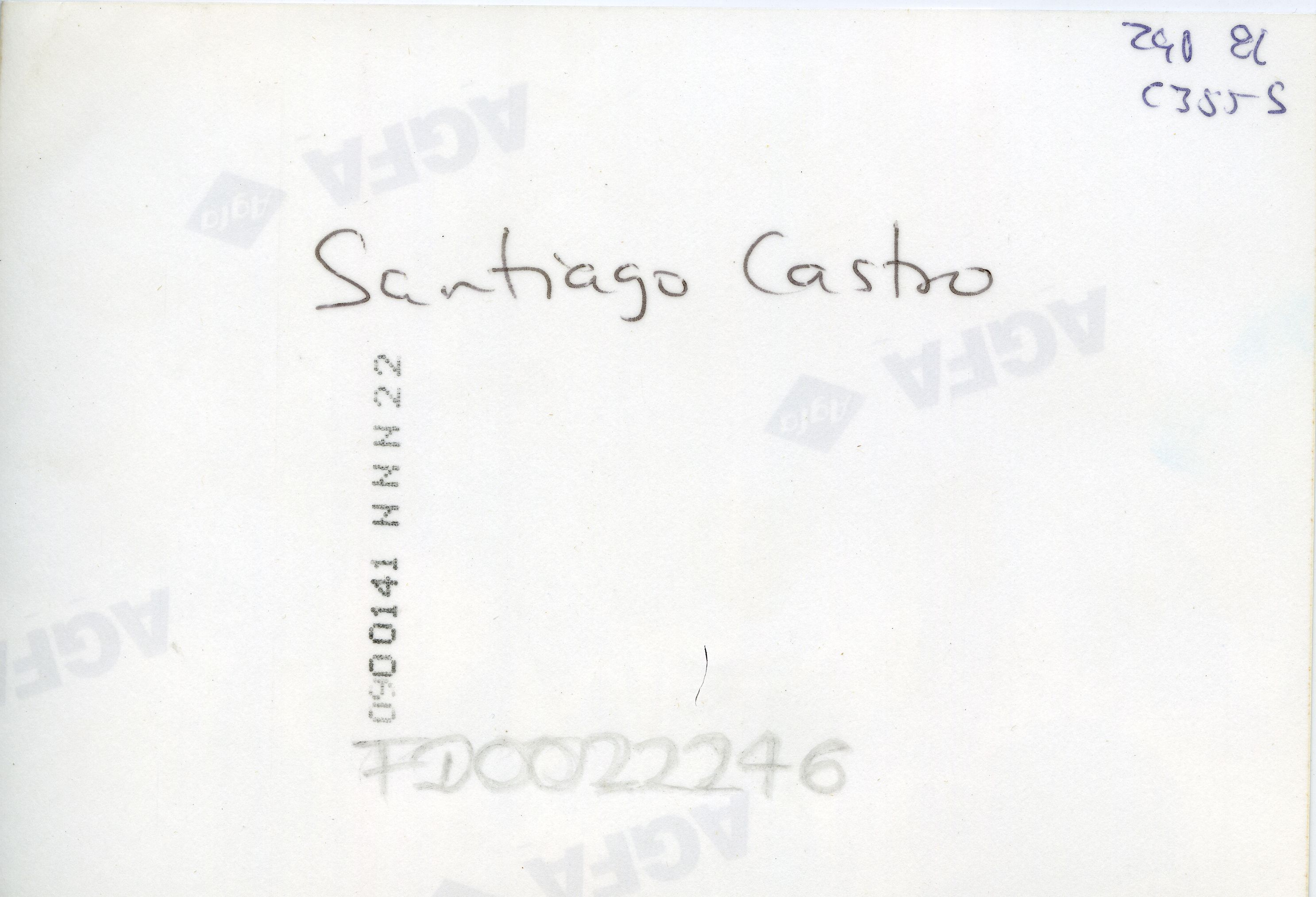 En la fotografía podemos observar al candidato conservador Santiago Castro en una de sus campañas políticas, el candidato está acompañado por sus seguidores, quienes lo escuchan atentamente.