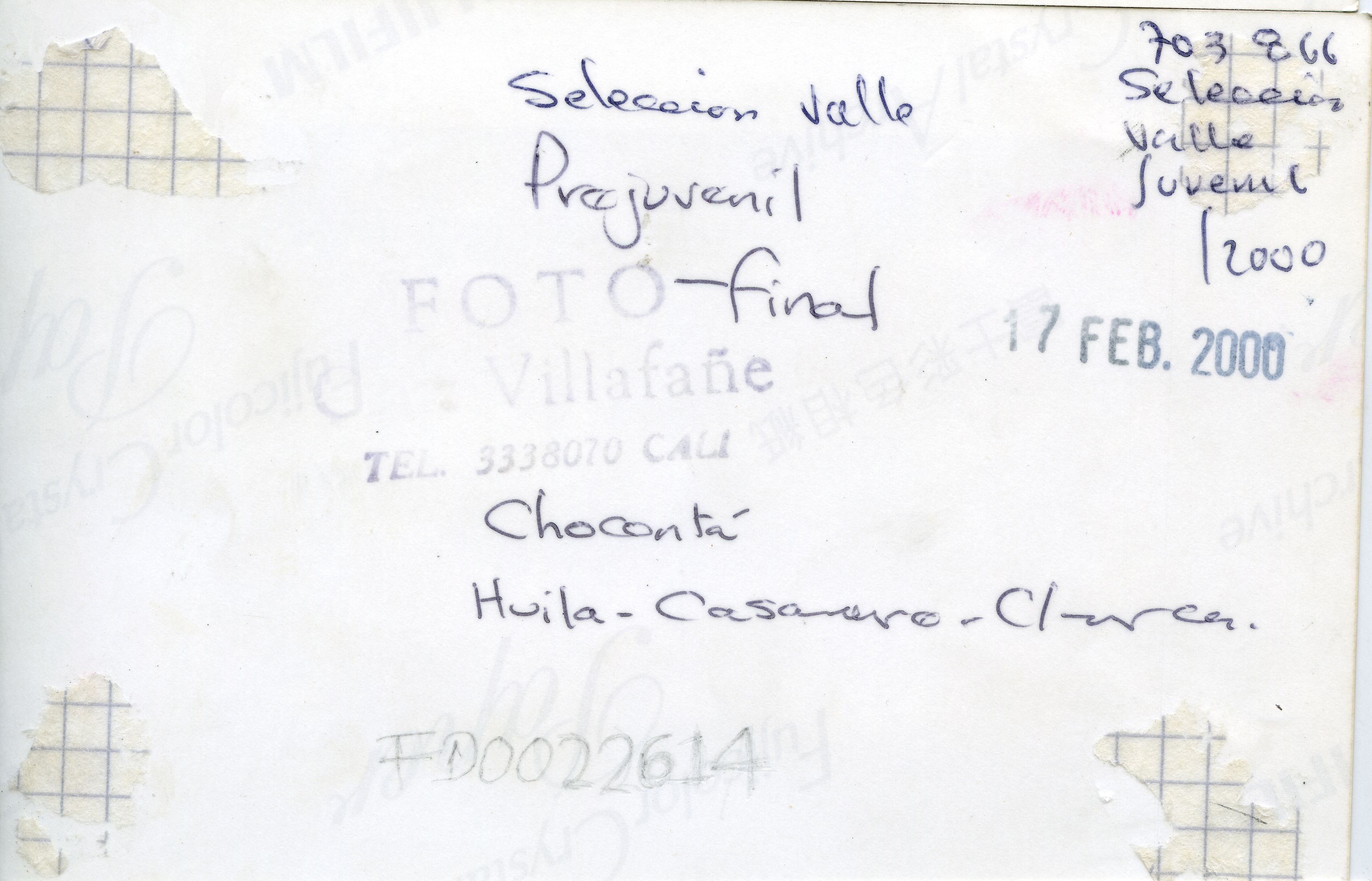Integrantes de la Selección Valle prejuvenil 2000, equipo de fútbol aficionado del departamento del Valle del Cauca. Se observan los jugadores posando para la foto.