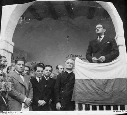 Vicente H. Cruz como orador. Entre el auditorio el presbítero Alfonso Zawadzky Colmenares. Cali, Fecha por identificar.