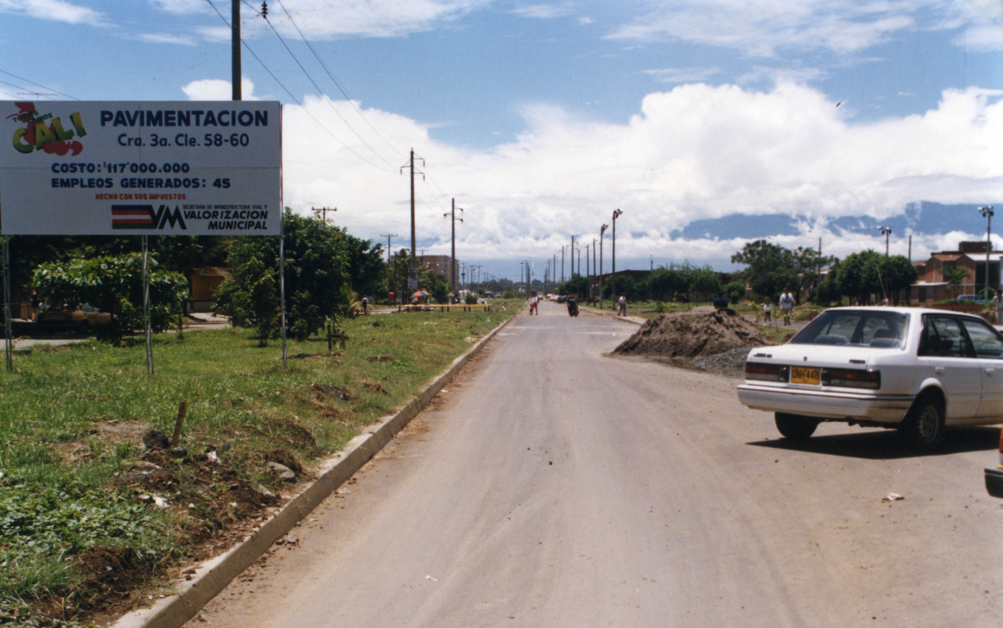 Labores de Pavimentación y de Reparcheo en la vía Cra. 3a. Cle. 58-60 en Santiago de Cali <El Archivo del Patrimonio Fotográfico y Fílmico del Valle del Cauca es responsabilidad de la Biblioteca Departamental del Valle Jorge Garcés Borrero, por convenio de cooperación suscrito con la Secretaria del Cultura Departamental, con el fin de aunar esfuerzos para su conservación, preservación y divulgación del Archivo entre la comunidad Vallecaucana, especialmente entre los estudiantes e investigadores que visitan la Biblioteca, propiciando el su uso y consulta permanente. La universidad Icesi es un colaborador en el proceso de difusión, facilitando la tecnología que permite la consulta de las imágenes.